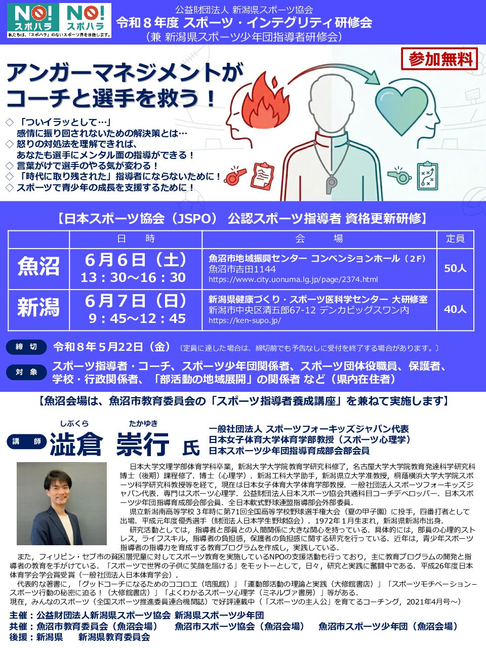 わたしたちは新潟県と一緒にスポーツ振興に取り組んでいます。