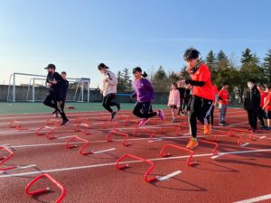 指導員は全員指導者の資格を持っているのはもちろん、全員現役アスリートです。時には一緒に走り、現役選手ならではの観点で指導しています。
